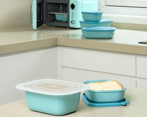 Materiał, z którego wykonano pojemniki, jest nie tylko bezpieczny i wytrzymały. Nadaje się również do podgrzewania w mikrofali i czyszczenia w zmywarce. Możesz więc oszczędzić czas i energię na przekładanie jedzenia do innych naczyń czy też zmywanie ręczne.