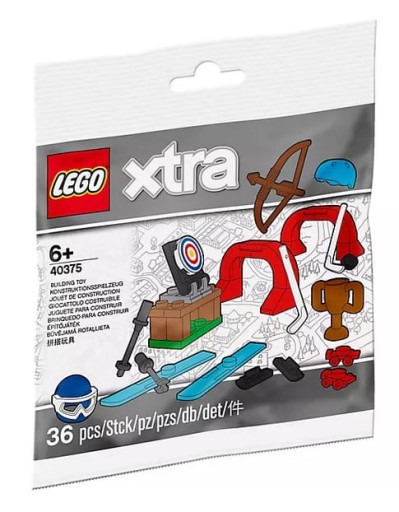 - Zestaw Akcesoria sportowe LEGO® xtra pozwala poczuć emocje uprawiania różnych dyscyplin. Dzieci znajdą w nim sprzęt do hokeja, jazdy na nartach i rolkach oraz łucznictwa, a także puchar dla zwycięzcy!