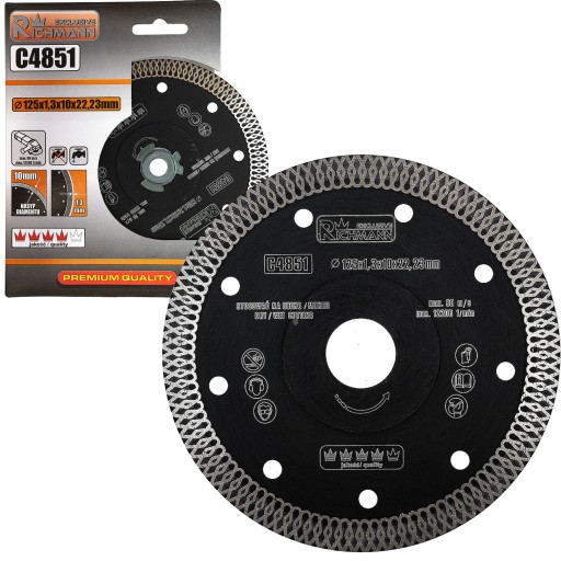 - Średnica tarczy wynosi: 125 mm, grubość: 1,3 mm, otwór: 22,23 mm, powierzchnia diamentowa 10 mm.