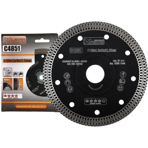 - Cienka tarcza diamentowa przeznaczona do cięcia materiałów takich jak: klinkier, glazura, gres, marmur, granit, dachówka.