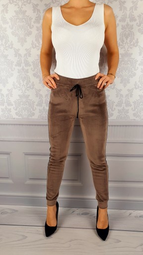 Modne spodnie welurowe ocieplane od środka , bardzo wygodne, wykonane z elastycznego materiału. Świetne w połączeniu ze szpilkami, dzięki swojej uniwersalności, pasują niemal do każdej stylizacji. Elastyczny materiał podkreśla kobiecą sylwetkę. Podkreśl swoje kobiece kształty! Spraw, by Twój codzienny Look był niepowtarzalny. Dzięki nim poczujesz się stylowo i komfortowo!