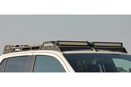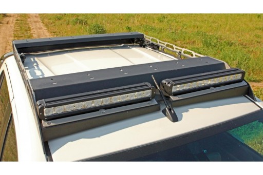 Na froncie bagażnika dachowego uwzględniono miejsce montażu oświetlenia przedniego pojazdu w postaci halogenów dalekosiężnych lub paneli led o maksymalnej szerokości 110cm. Przewidziano także miejsca montażowe dla czterech dedykowanych lamp roboczych (BA006) montowanych wewnątrz tylnej oraz bocznych części bagażnika. To rozwiązanie zabezpiecza lampy i ich instalację przed uszkodzeniami mechanicznymi.