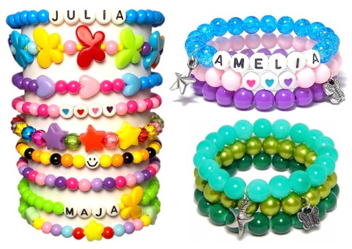Przykładowe wzory bransoletek wykonane między innymi z elementów zestawu:
