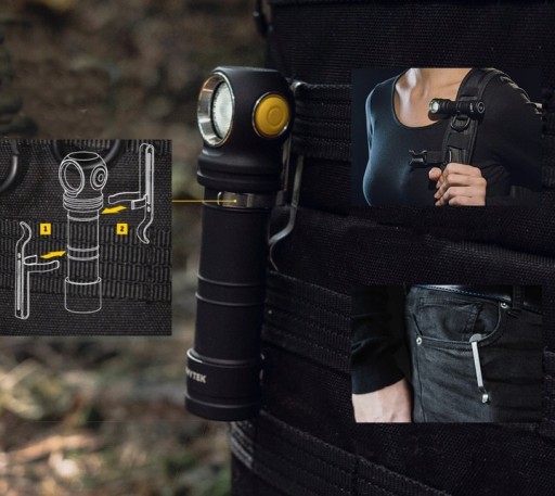 - Uchwyt umożliwiający szybkie wypięcie latarki z pasków nagłownych