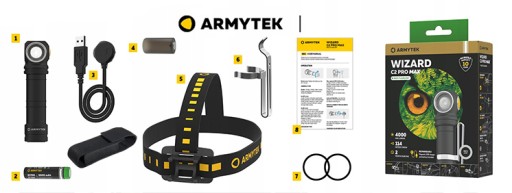Najnowszy w Wizard Pro v4 MAX to prawdziwy potwór dla prawdziwych pasjonatów i ludzi potrzebujących ekstremalnie mocnej, niezawodnej i dzielnej czołówki. Posiada 10 programów w tym stroboskopy. Umożliwia świecenie z maksymalną mocą 4000 lumenów lumenów Jest odporna na wodę (10m) oraz na upadki. Konstrukcja latarki umożliwia noszenie jej na głowie, jak typowej czołówki, a dzięki klipsowi można ją także doczepić do plecaka lub kieszeni kurtki. Ponadto posiada silny magnes w tylnej zakrętce, więc przyda się także w pracach warsztatowych i na biwaku. W komplecie latarki znajduje się wysokiej jakości akumulator 21700 Li-Ion jak również ładowarka. Ładowanie odbywa się przez tylną nakrętkę (bez konieczności wyciągania akumulatora). Dodatkowo model jest kompatybilny z uchwytem rowerowym Armytek ABM-01, dzięki czemu istnieje możliwość stabilnego połączenia latarki z kierownicą rowerową (uchwyt nie wchodzi w skład zestawu).