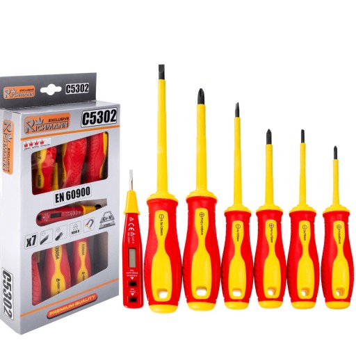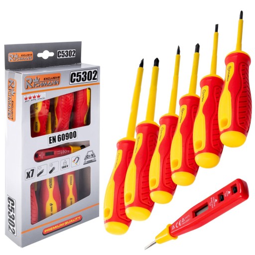 - Zestaw zawiera 6 sztuk izolowanych + 1 cyfrowy próbnik napiecia.