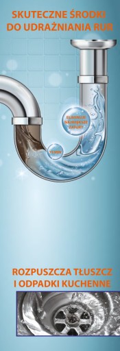 1. Wlać do syfonu ok. 1l wrzącej wody. Wsypać ostrożnie ok. 50 g udrożniacza do rur. Po ok. 15 minutach przepłukać małą ilością gorącej wody, a następnie dużą ilością wody zimnej. W razie konieczności czynność powtórzyć. Po zakończeniu prac opakowanie szczelnie zamknąć.