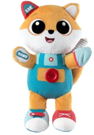 Lisek to pluszowa zabawka, która podąża za rozwojem twojego dziecka! Od 6. miesiąca: Lisek uczy dziecko pierwszych słów i zabawnych rymowanek na temat części ciała. Co więcej, mówi i śpiewa w dwóch językach: polskim i angielskim! A od 2 lat: Lisek uczy dziecko, które elementy garderoby pasują do której części ciała i podaje nazwy ubrań w języku polskim i angielskim!