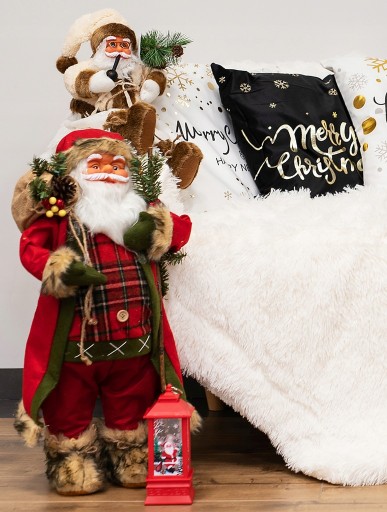 Przepiękna figurka Świętego Mikołaja to wspaniała ozdoba dla twojego domu, która wprowadzi bożonarodzeniowy nastrój wśród domowników. Mikołaj posiada małe małe dzwoniące dzwoneczki, fajkę, worek z choinką i szyszkami. Figurka wykonana jest z tworzywa sztucznego i pokryta przyjemnym w dotyku bawełnianym ubrankiem zapewniającym trwałość i wysoką jakość wykonania. Ma stabilną konstrukcję i wysoką jakość wykonania.