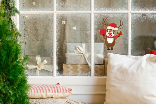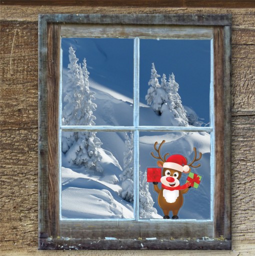 МАЛЕНЬКАЯ наклейка РОЖДЕСТВЕНСКИЙ ОЛЕНЬ 2 на окно - это очень круто
