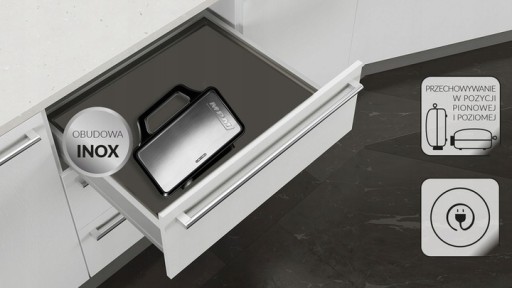 Praktyczny opiekacz MOP-45M zapewni porcję czterech chrupiących, ciepłych kanapek. Urządzenie sprawdzi się w każdej kuchni, urozmaicając codzienne menu. Pokryte nieprzywierającą powłoką płyty oraz trwała obudowa inox gwarantują długie użytkowanie.