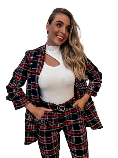 Żakiet marynarka szkocka krata rękaw 3/4 czarna