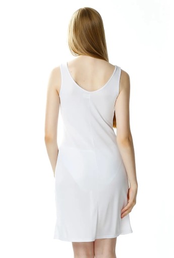 Uwagę przyciąga dekolt w szpic, który wykończony jest delikatną gipiurą.Halka posiada szerokie ramiączka, które zapobiegają zsuwaniu się ich z ramion.