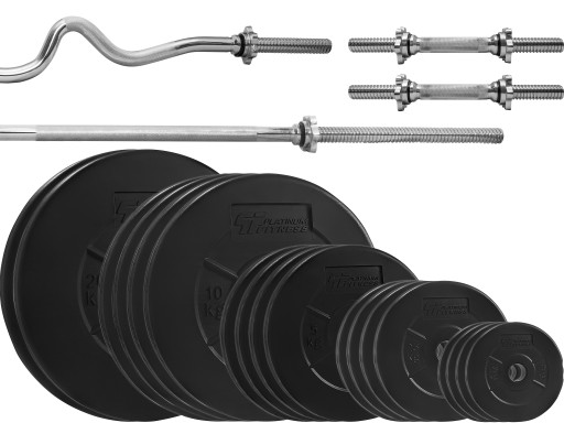 Zestaw 135kg Oryginalnego obciążenia micro-gel o średnicy otworu 29 mm + Gryf mocno łamany 25mm + Gryf prosty 180cm / 25mm + 2x Gryfik 36cm / 25mm