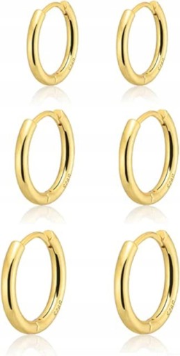 Kolczyki złote kółka 3 pary rozmiar 8 mm , 10 mm , 12 mm