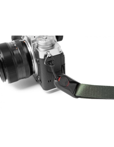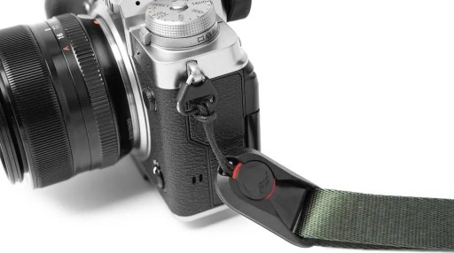 Zastosowanie innowacyjnego systemu kotwicumożliwia proste i szybkie odpięcie aparatu od paska umożliwiając podczepienie go do innych pasków Peak Design (np. paska na rękę CLUTCH).