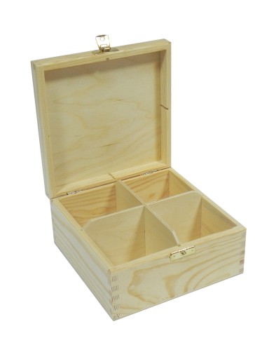 EKSKLUZYWNE, DREWNIANE PUDEŁKO NA HERBATĘ Z 4 PRZEGRÓDKAMI!
