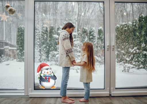 РОЖДЕСТВЕНСКАЯ наклейка на окно ПИНГВИН - ПОДАРОК