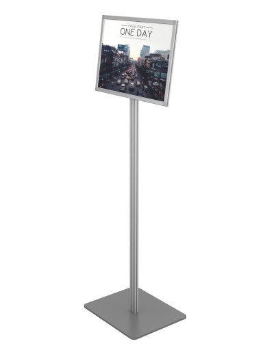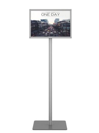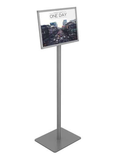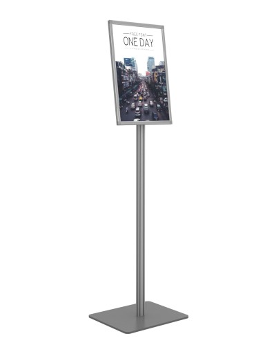 Stabilny, wolno stojący prezenter informacyjny wykonany z konstrukcji aluminiowej oraz ramki w formacie A3 (możliwe inne formaty) przymocowanej do pojedynczej wolno stojącej nogi. Istnieje możliwość odpięcia ramki i powieszenia jej osobno np. na ścianie.