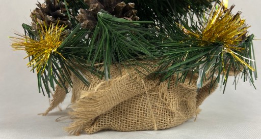 Nasza choinka osadzona jest na pniu o średnicy 10 cm. Podstawa została owinięta starannie tkaniną jutową.