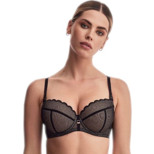 Piękny i bardzo kobiecy biustonosz ciążowy oraz do karmienia - Alles MaMa Chita, polecany dla mniejszych i średnich biustów. Miseczka na certyfikowanej fiszbinie, podtrzymuje i delikatnie modeluje piersi. Model usztywniony zostały cienką, elastyczną pianką gorseciarską, która doskonale zamaskuje wkładki laktacyjne. Biustonosz wykonany został z czarnej koronki pokrywającej beżową miseczkę od zewnątrz. Od środka, miseczka obszyta została 100% bawełną o wykończeniu antybakteryjnym. Zapięcie miseczki Quick-Click, zapewnia wygodę przy karmieniu maleństwa, dając Ci możliwość odpięcia jej jedną ręką. Zapięcie biustonosza 3 lub 4-stopniowe, na 2 lub 3 rzędy haftek, abyś mogła długo cieszyć się stabilnym obwodem swojej bielizny. Pomiędzy miseczkami ozdobna kokardka.