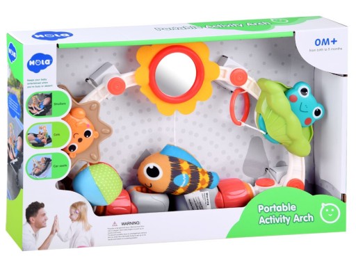 Kolorowy pałąk do wózka, fotelika, leżaczka dla maluszka urozmaici każdemu dziecku czas. Zabawka jest bardzo łatwa w montażu, a regulacja jej kąta nachylenia pozwoli dostosować ją do potrzeb każdego dziecka. Zabawki zawieszone na łuku umożliwią każdemu maluszkowi rozwój motoryki dużej, ruchów precyzyjnych oraz zmysłów. Zabawka zachęca do chwytania i wyciągania rączek, rozwija umiejętność skupienia uwagi, kształtuje wyobraźnię dziecka. Uczy rozróżniania kształtów i kolorów. Pałąk ma uniwersalny uchwyt, zapewniający o bez problemowe mocowanie.