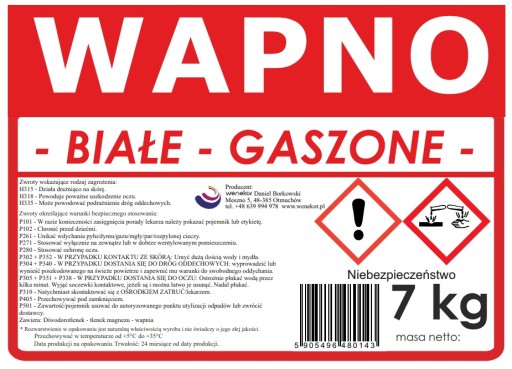 WAPNO GASZONE, LASOWANE, MALARSKIE, EXTRA BIAŁE