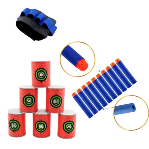 ✅ Zestaw 6 piankowych celów do wyrzutni na miękkie strzałki, w kształcie beczek.