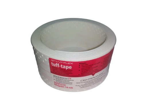 Taśmę TUFF-TAPE stosuje się do łączeń płyt gipsowo-kartonowych na płaskich powierzchniach