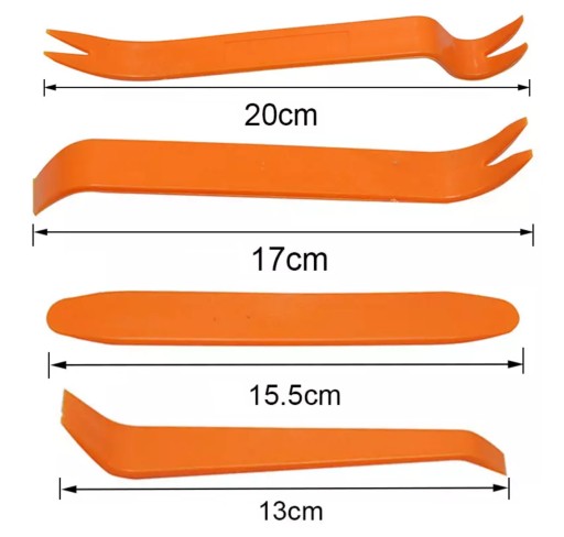 Łyżki do demontażu spełniają swoje zadanie nie tylko podczas demontażu tapicerki samochodowej. Idealne również sprawdzi się do otwierania sprzętu elektronicznego na zatrzaski np. pilotów do TV itp. Nie pozostawia śladów otwierania. Dzięki tym ściągaczom rozbierzesz każdy element tapicerki nie uszkadzając jej przy tym. Łyżki do demontażu wykonane z mocnego tworzywa (o różnej grubości i giętkości), dzięki nim nie wyszczerbisz rantów tapicerki podczas jej podważania.