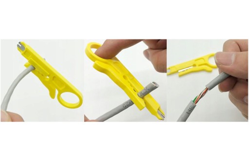 Proste urządzenie, które niesamowicie ułatwia prace. Wystarczy ściągacz założyć na kabel i wykonać obrót 360 stopni. Narzędzie wykonane z wysokiej jakości plastiku i noża z hartowanej stali. Jego metalowy Dziubek ma zastosowanie do gniazdek typu keystone i patch paneli.