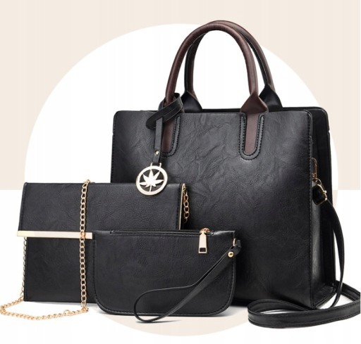 - Zestaw składa się z jednej dużej torebki typu Shopper, mniejszej listonoszki oraz saszetki/portfela