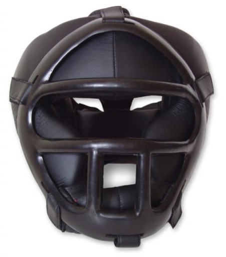 Kask treningowy z maską idealnie sprawdzi się podczas treningu sportów walki i boksu. Zaprojektowany w taki sposób aby chronić: głowę, uszy, kości szczęki, kości policzkowe oraz nos. Plastikowa krata mocowana jest do kasku za pomocą rzepów.