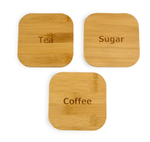 - Pokrywki pojemników i chlebaka wykonane z drewna bambusowego