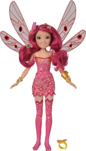 Lalka przedstawiająca Mię posiada duże ruchome skrzydła. Włosy ma koloru różowego, a ubrana jest w śliczną różową sukienkę z różowymi rajstopami. Na nadgarstku posiada bransoletkę, która w bajce przenosi Mię do magicznego miejsca. Dodatkowo w zestawie znajduje się jeszcze jedna bransoletka, 6 spinek dla lalki oraz pierścionek dla dziewczynki.