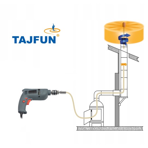 Wysokiej jakości adapter do wiertarki, który stworzony został z myślą o zestawie do mechanicznego czyszczenia komina „Tajfun”. Bez niego, samodzielne wyczyszczenie komina będzie utrudnione lub niemożliwe, gdyż nie każda wiertarka posiada odpowiedni otwór, do którego zestaw czyszczący Tajfun będzie pasował.