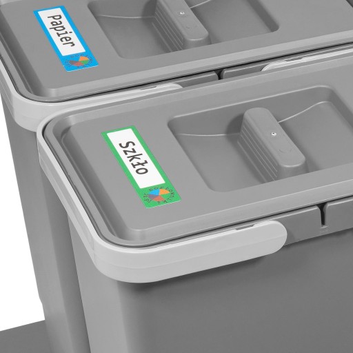 - solidne plastikowe uchwyty zapobiegające zsuwaniu się worków na śmieci do wnętrza koszy oraz pozwalające na higieniczne wkładanie i wyjmowanie koszy z sortownika