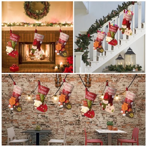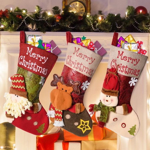 Zestaw 3 x Duża skarpeta świąteczna na prezenty 3D 48 cm
