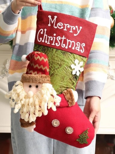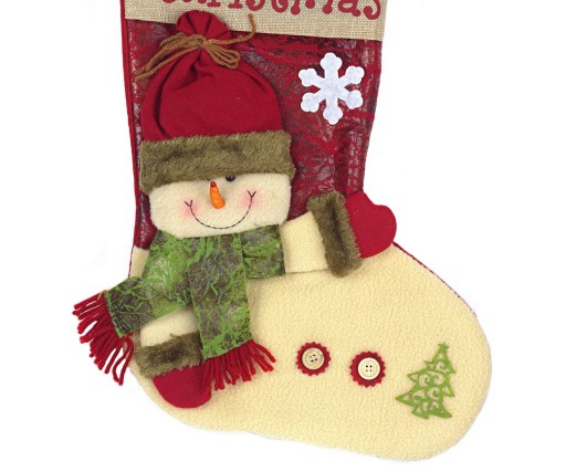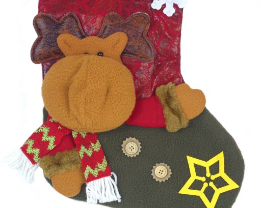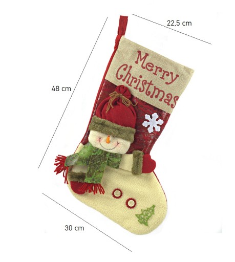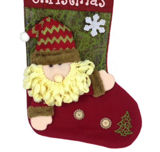 Duża, dekoracyjna skarpeta świąteczna z aplikacją 3D. Duży rozmiar sprawi, że zmieszczą się w niej ciekawe prezenty - słodycze, zabawki, różne drobiazgi i nie tylko. Piękne wykonanie i efektowny wygląd sprawi, że będzie piękną ozdobą świąteczną nie tylko na kominku, ale także na poręczach czy nawet na klamkach drzwi. Sprawdzi się jako opakowanie na prezenty zarówno dla dorosłych jak i dla dzieci.