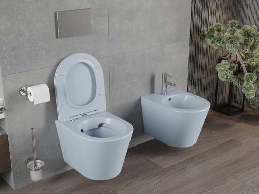 Mexen Rico miska wc Rimless z deską wolnoopadającą slim duroplast, szary-niebieski mat
