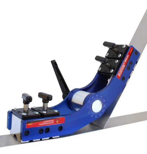 - posiada cztery wyłączniki magnesu, co pozwala na kontrolowanie każdego z magnesów osobno. Wyłączniki umożliwiają swobodne ustawienie kątownika we właściwej pozycji, a następnie łatwe i bezpieczne włączenie magnesów