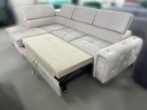 Funkcjonalny i komfortowy narożnik. Posiada regulowane zagłówki. Ponadto narożnik wyposażony jest w pojemnik na pościel i funkcję spania. Mebel świetnie odnajdzie się w nowoczesnych jak i w tradycyjnych wnętrzach. Do jego produkcji użyto najwyższej jakości materiałów.