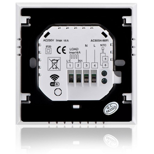 Termostat wyposażony jest w łączność bezprzewodową Wi-Fi 802.11 b/g/n w paśmie 2,4 GHz.