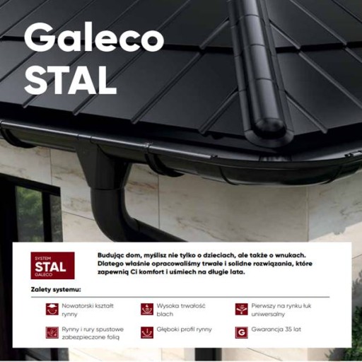 Dopasowany do systemu GALECO STAL, kolor osadnika jest zbliżony do koloru RAL 7015 GRAFITOWY ( A ) w. g. kolorystyki producenta.