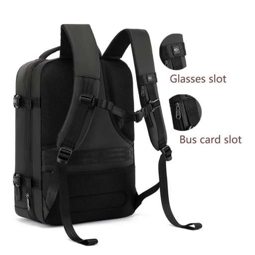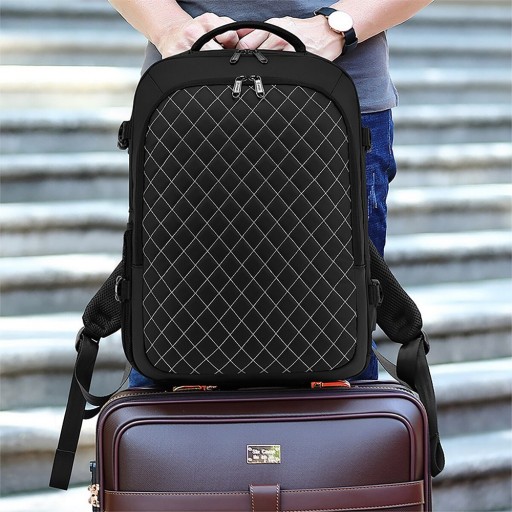 Bardzo pojemny plecak marki POSO o symbolu PS-661 z ozdobnym przeszyciem z przodu został wykonany z wodoodpornych i wytrzymałych materiałów – nylon i PVC, który skutecznie chronią zawartość przed przemoknięciem. Niebywałym atutem tego plecaka jest otwieranie środkowej komory na płasko, jak walizkę pod kątem 180st., aby ułatwić dostęp do zawartości. W głównej komorze znajduje się przestrzeń na zapakowanie ubrań, które można spiąć elastycznymi paskami oraz duża, siatkowa kieszeń na mniejsze rzeczy. Kolejną zaletą tego modelu jest możliwość powiększenia go o dodatkowe 8cm głębokości poprzez rozpięcie biegnącego po całym obwodzie zamka, dzięki czemu pojemność wzrasta z 28L do 40L. Z przodu plecaka umieszczono kieszeń z organizerem na drobne rzeczy, akcesoria i długopisy, zamykaną na zamek kieszonkę oraz przypinkę do kluczy. Z tyłu plecaka znajduje się otwierana na płasko, miękka kieszeń na laptop w rozmiarze 17,3" , kieszeń na tablet do 10 (obie zapinane na pasek z rzepem) oraz dwie kieszenie na akcesoria. Z prawej strony plecaka znajduje się siatkowa, elastyczna kieszeń przeznaczona na napój lub parasolkę. Natomiast z prawej strony plecaka umieszczono zewnętrzne złącze USB, dzięki któremu nie ma konieczności wyciągania power banka z plecaka, aby naładować telefon lub inne przenośne urządzenie. Tył plecaka i szelki wyprofilowane w kształcie litery „S wyłożono miękkimi gąbkami, dzięki czemu plecak jest wygodny w noszeniu. Na jednej z szelek umieszczono zapinaną na zamek małą kieszonkę np. na kartę lub identyfikator oraz pasek do zahaczenia okularów. Plecak posiada pas piersiowy, aby lepiej rozłożyć ciężar przy maksymalnym zapakowaniu plecaka oraz dodatkowe zapięcia boczne, aby chronić zawartość przed nieoczekiwanym rozpięciem zamka. Na plecach znajduje się nylonowy pas, dzięki któremu można założyć plecak na rączkę torby lotniczej oraz mała kieszonka zapinana na zamek, w której można bezpiecznie przechować telefon lub portfel. U góry plecaka umieszczono wygodny uchwyt do przenoszenia w ręce oraz mniejszy uchwyt do zawieszenia go na wieszaku. Pakowność i funkcjonalność plecaka POSO PS-661 na pewno docenią osoby lubiące podróże, plecak doskonale sprawdzi się jako bagaż podręczny.