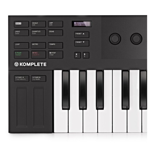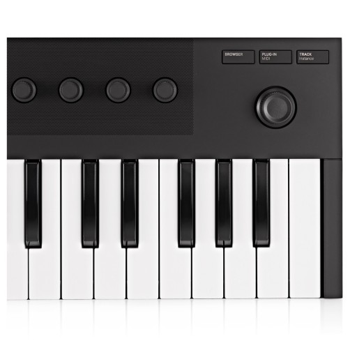 Komplete Kontrol M32 to doskonały wstęp do świata NI. Ten 32-klawiszowy kontroler MIDI oferuje naprawdę wiele. Jak wszystkie klawiatury NI jest w pełni zintegrowany ze wszystkimi produktami Komplete, oraz dziesiątkami produktów pracujących w formacie NKS. Oczywiście obsługuje też wszystkie instrumenty VST. Do dyspozycji mamy 8 czułych na dotyk pokręteł, dwa kontrolery wstęgowe i joystick służący do przeglądania brzmień i poruszaniu się po projektach. W małej obudowie znalazło się też miejsce na niewielki, ale bardzo przydatny ekran OLED znacznie przyspieszający pracę. Nie zapomnieliśmy o wejściu pedału sustain znajdującym się na tylnym panelu. M32 będzie dostarczana ze sporym pakietem instrumentów i efektów (cena przewyższa wartość samej klawiatury !).
