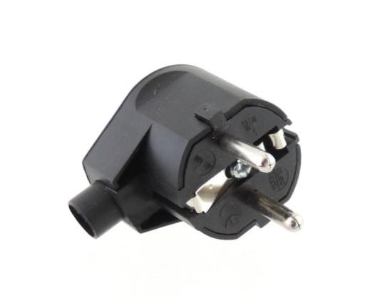 СЕТЕВАЯ ВИЛКА С ЗАЗЕМЛЕНИЕМ, УГЛОВАЯ, 16А, ЧЕРНАЯ