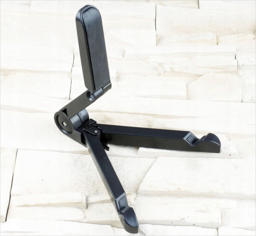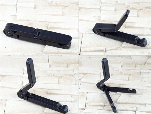 Stojak wykonany jest z wysokiej jakości tworzywa, dzięki czemu możesz go wielokrotnie składać i rozkładać. Lekka i poręczna podstawka z pewnością sprawdzi się np. w czasie podróży pociągiem.
