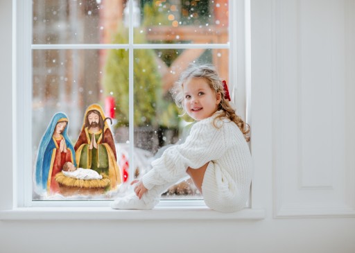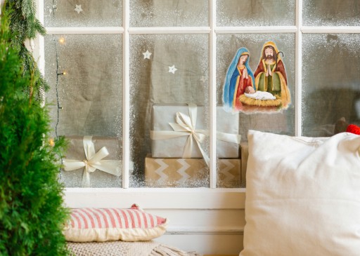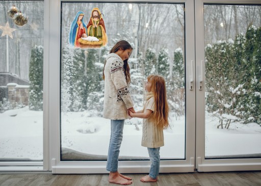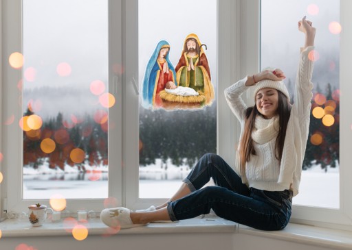 РОЖДЕСТВЕНСКАЯ наклейка на окно, вертеп, РОЖДЕСТВО 2, супер красивое