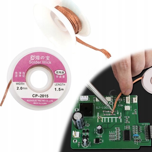 Plecionka lutownicza CP-2015 Solder Wick - to taśma rozlutowująca przydatna przy odsysaniu roztopionego spoiwa lutowniczego. Jest to niezbędne narzędzie przy pracach lutowniczych.